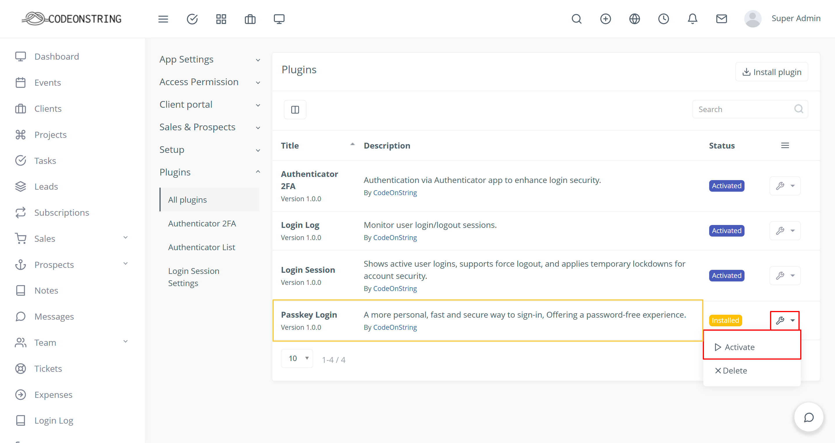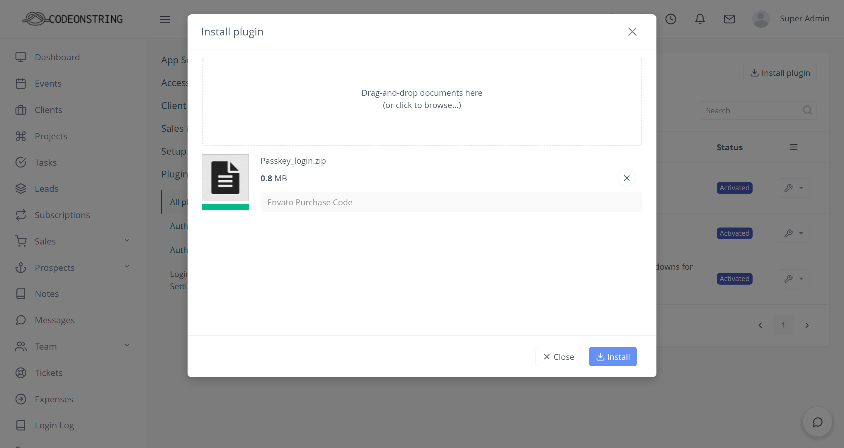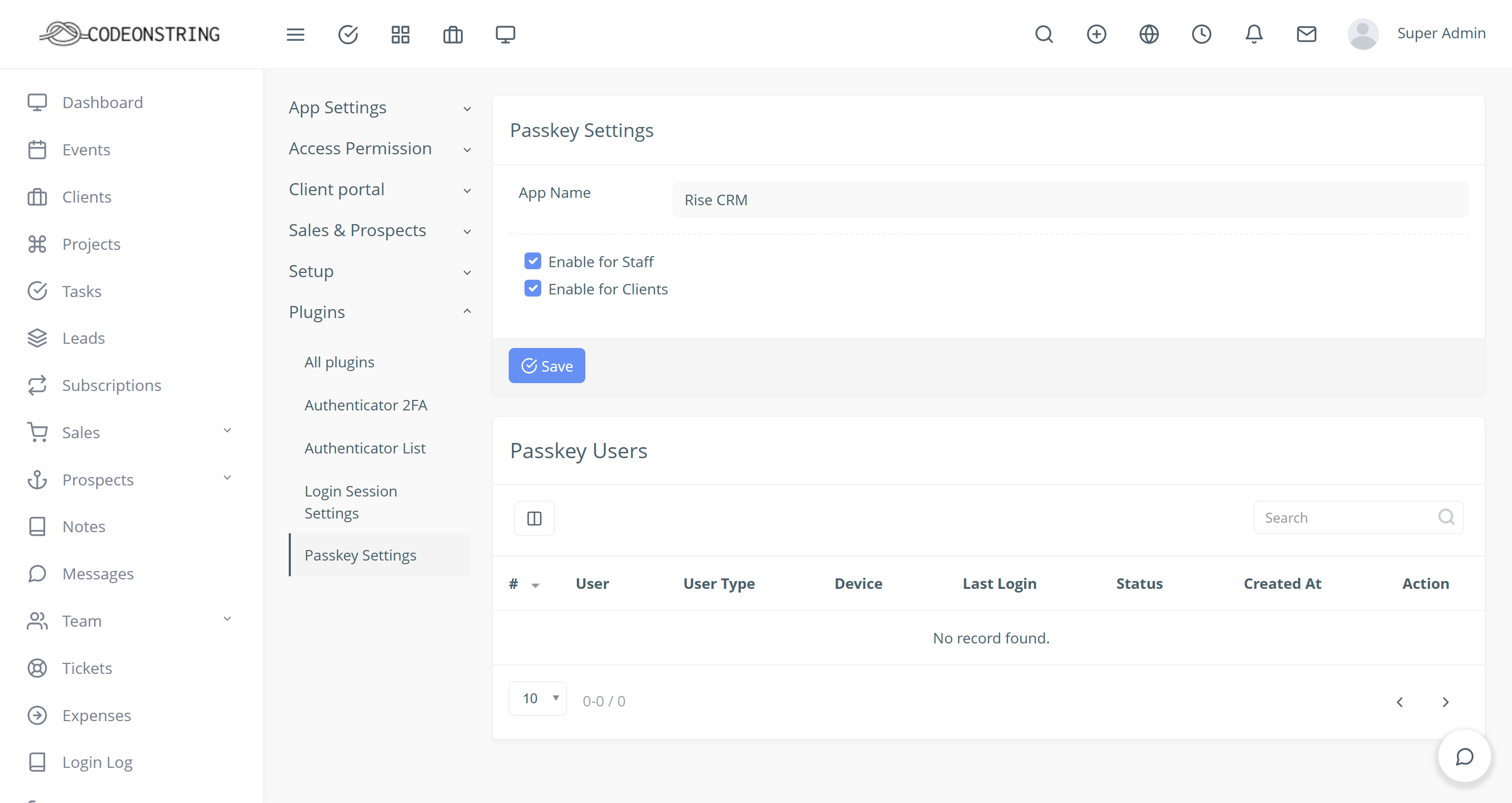 This documentation provides complete guidance on the installation, configuration, and usage of the Passkey Login Plugin for Rise CRM. This module enables staff and customers to log in securely using pin or biometric authentication methods such as Face ID, or fingerprint—without needing to enter a password.
